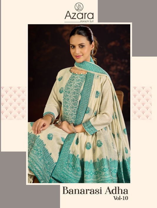 Banarasi Adha Vol 10 Radhika Fashion Azara Cotton Karachi Salwar Suits Supplier India