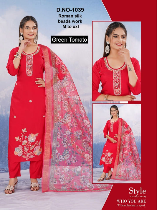 Maya Green Tomato Roman Readymade Pant Style Suits Wholesale