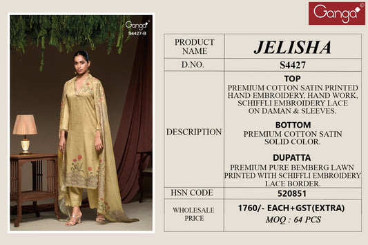 Jelisha 4427 Ganga Cotton Satin Pant Style Suits Wholesaler Gujarat
