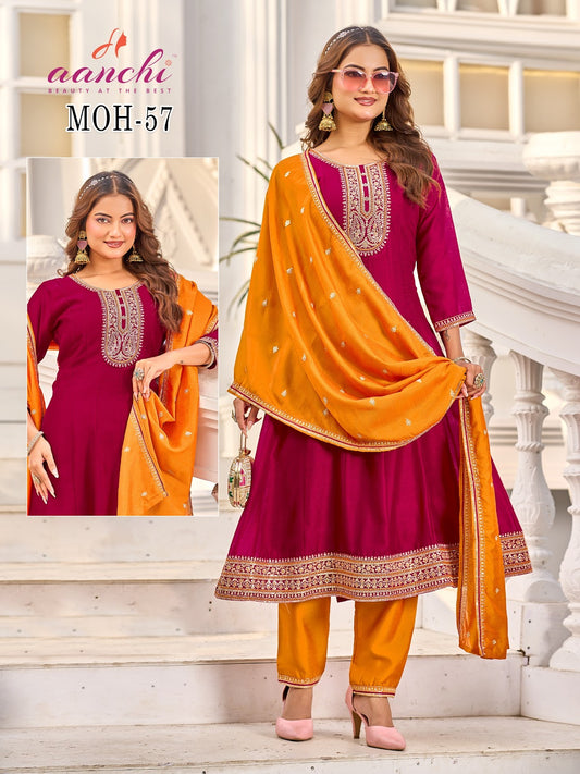 Moh 57 To 67 Aanchi Vichitra Silk Readymade Anarkali Suits Wholesaler