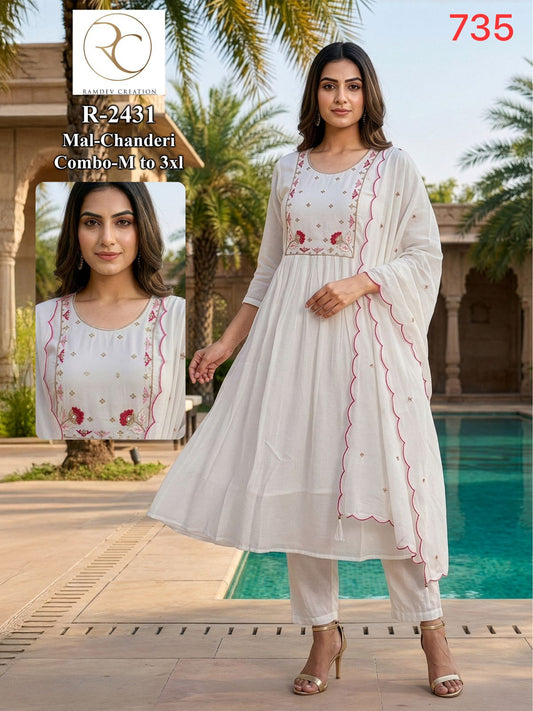 R 2425-2432 Ramdev Creation Chanderi Readymade Anarkali Suits Wholesale Price
