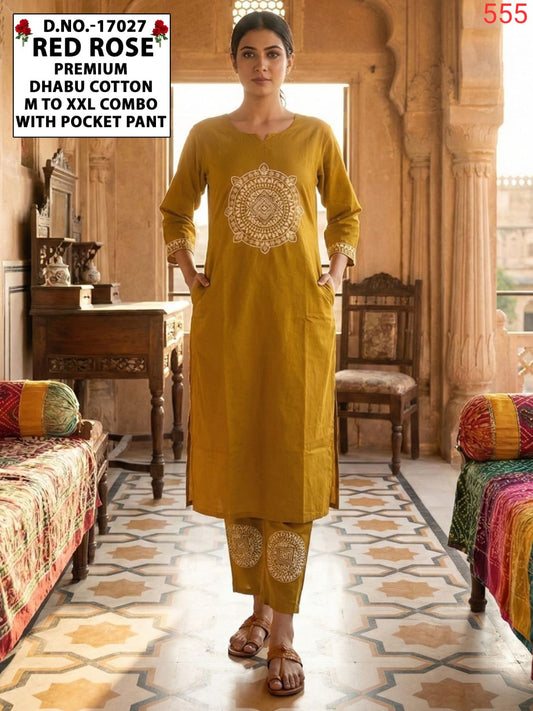 Red Rose Ramdev Creation Cotton Kurti Pant Set Supplier Ahmedabad