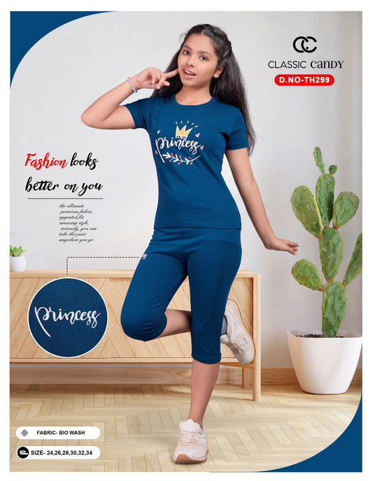 Th299 Classic Candy Biowash Girls Capri Night Suits Wholesale Price