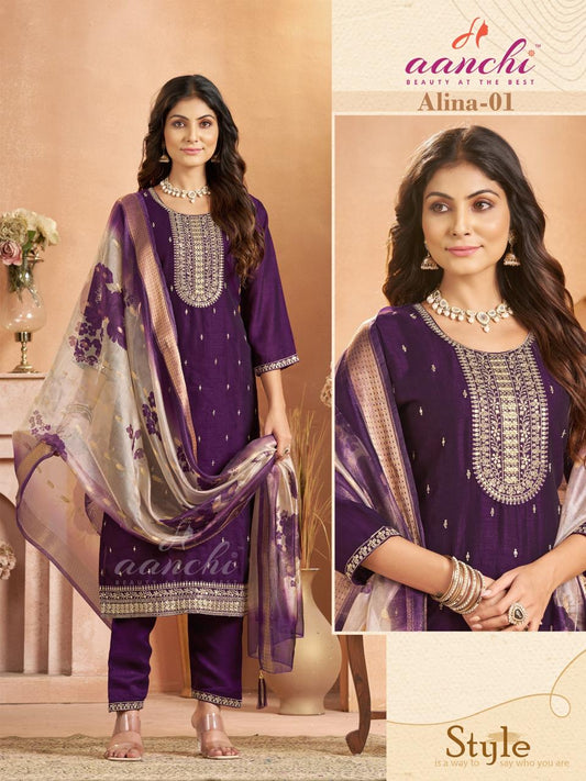 Alina Aanchi Vichitra Silk Readymade Pant Style Suits Wholesale Rate