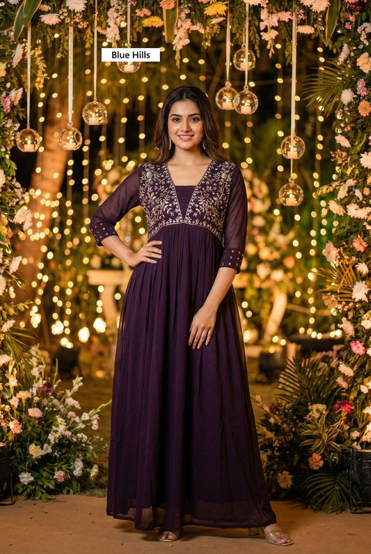 Amayra Blue Hills Georgette One Piece Gown Manufacturer Ahmedabad