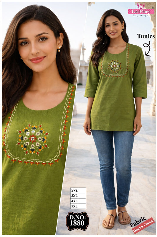 Design 1880 La Fairy Dhabu Cotton Short Kurtis Exporter Ahmedabad