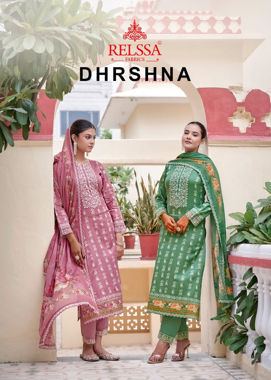 Dhrshna Relssa Fabrics Giza Satin Pant Style Suits Supplier Gujarat