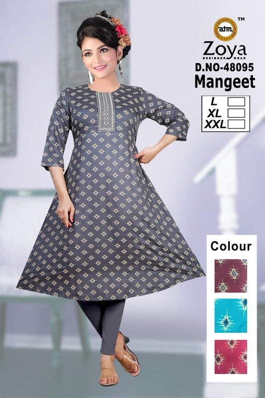 Mangeet 140326 Zoya Rayon Anarkali Kurtis Supplier
