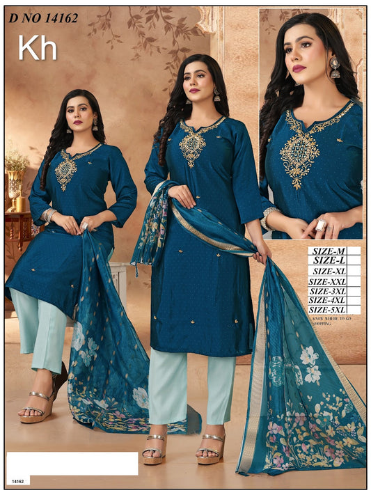 "Choose Any Size : Xl, 2Xl ♦️*Price: 1700 Rs. + 5% Gst x 3 pcs = 5355 Rs.* ** 1412 Laxuria Trendz Pakistani Readymade Suits* ♦️Top...