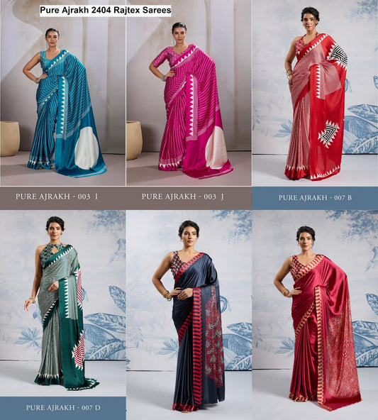 Pure Ajrakh 2404 Rajtex Modal Satin Sarees Wholesale