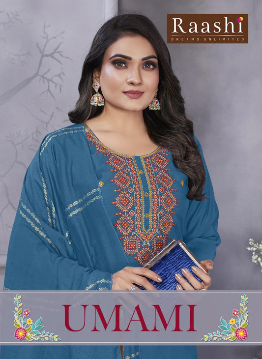 Umami Raashi Roman Silk Readymade Pant Style Suits Wholesaler Gujarat