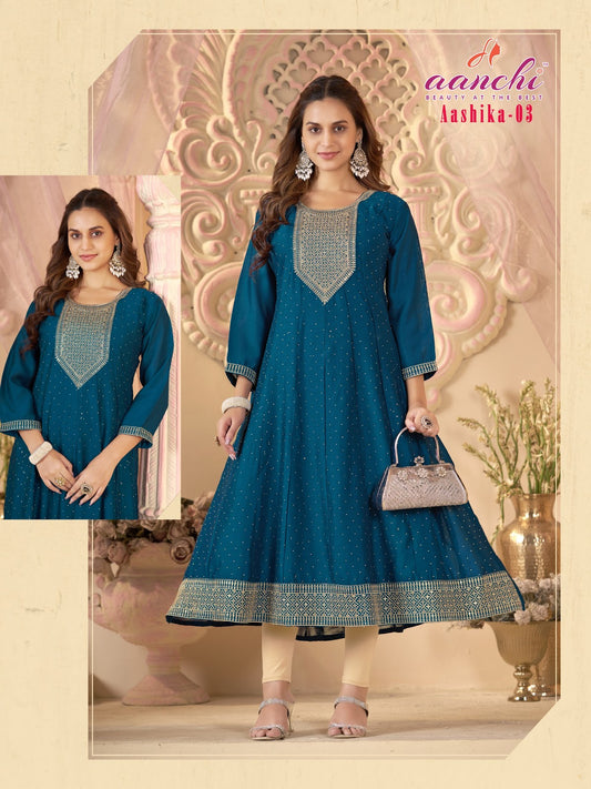 Aashika 01-03 Aanchi Vichitra Silk Anarkali Kurtis Wholesale