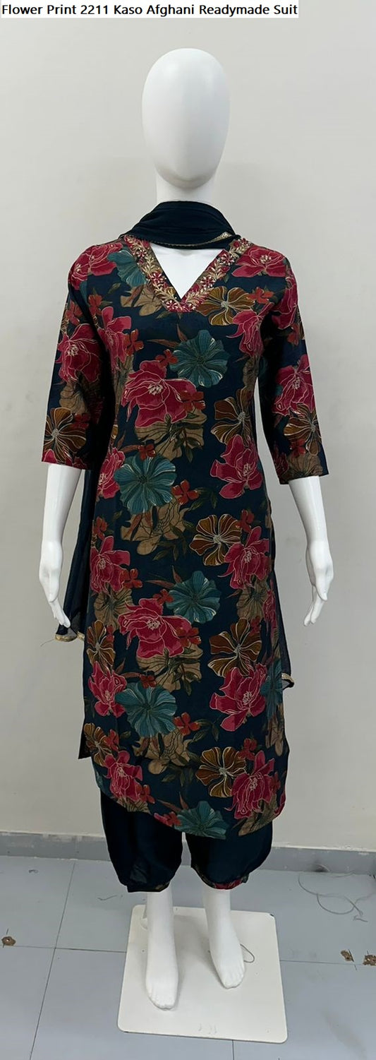 Flower Print 2211 Kaso Modal Silk Afghani Readymade Suit