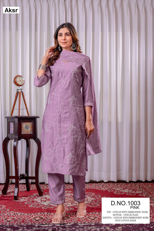 Design 1003 Aksr Vatican Silk Readymade Pant Style Suits Supplier India