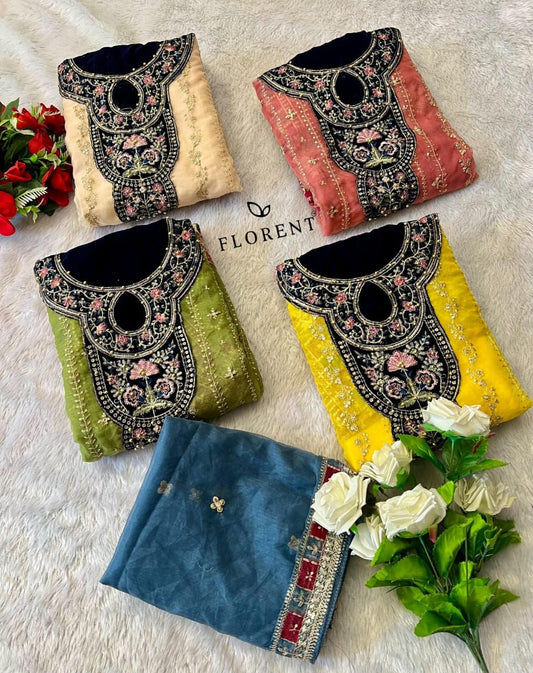 10299 Zaha Organza Pakistani Readymade Suits Supplier Gujarat