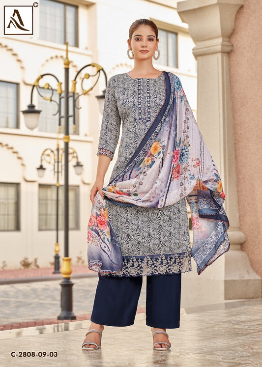 With us, you get quality, affordability, and quick delivery, making us your trusted wholesale supplier of Alok Karachi Salwar Suits worldwide.