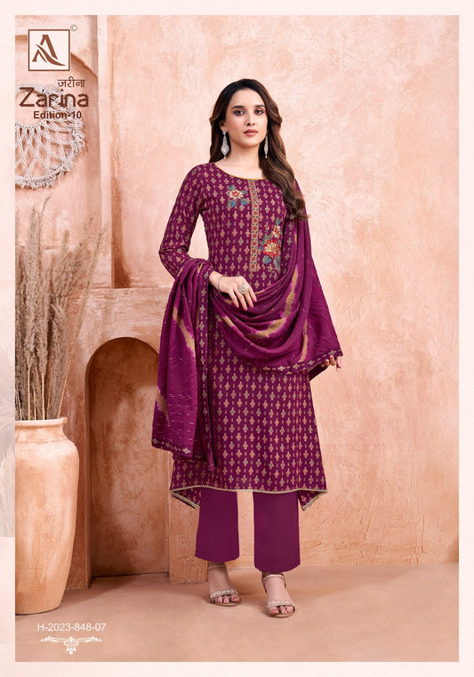 Zarina Edition 10 Alok Pure Viscose Karachi Salwar Suits Wholesale