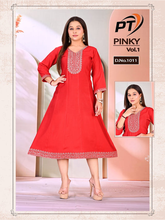 Pinky Vol 1 Pt Jacquard Anarkali Kurtis Wholesaler