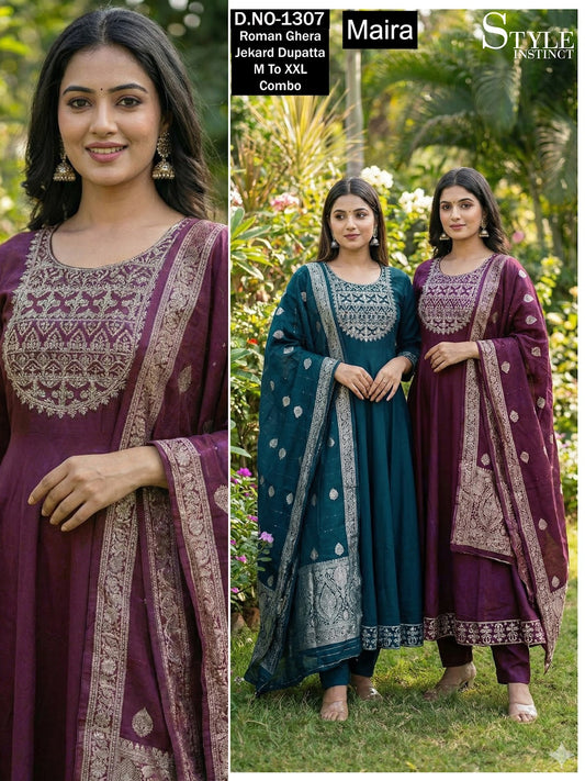 Design 1304-1307 Maira Roman Silk Readymade Anarkali Suits Wholesaler Gujarat