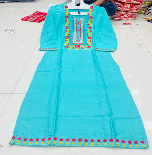 Handwork 240325 Ayg Modal Silk Straight Cut Kurtis Wholesaler India