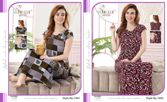 Experience comfort and style with our premium collection of Belly Night Gowns at unbeatable wholesale prices. As a trusted wholesaler from Ahmedabad, Gujarat, we bring you authentic Belly brand night gowns designed with soft fabrics, elegant patterns, and perfect fits for everyday comfort and relaxation.