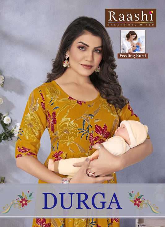 Durga Raashi Rayon Feeding Kurtis Exporter Gujarat