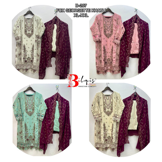 B 207 Bilqis Fox Georgette Pakistani Readymade Suits Supplier Ahmedabad