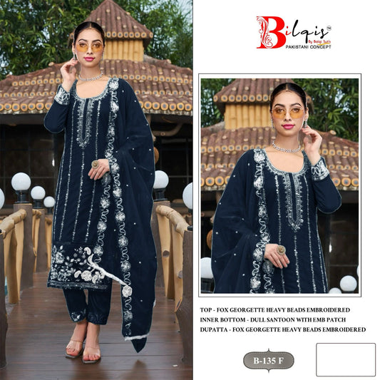 B 135 E To H Bilqis Fox Georgette Pakistani Salwar Suits Wholesaler