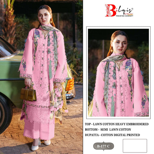B 177 Bilqis Cambric Lawn Pakistani Salwar Suits Wholesale Rate