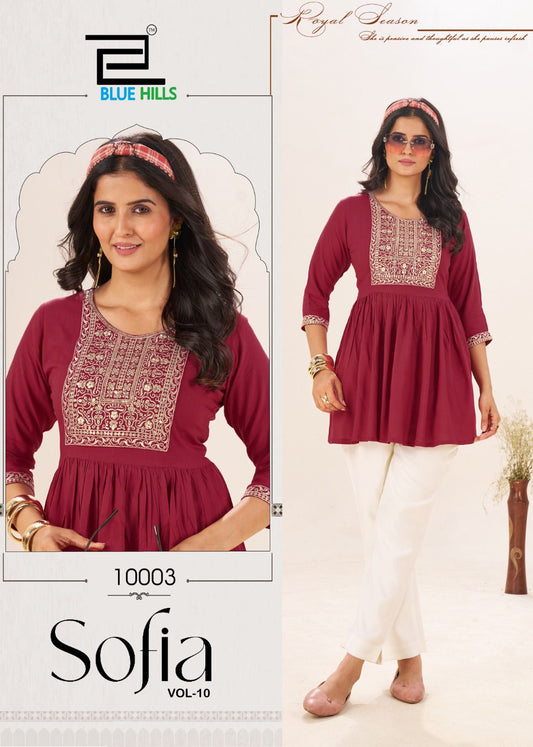 Sofia Vol 10 Blue Hills Rayon 14Kg Designer Long Top Manufacturer Ahmedabad