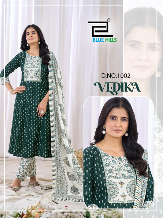 Vedika Blue Hills Rayon 14Kg Readymade Pant Style Suits Wholesaler India
