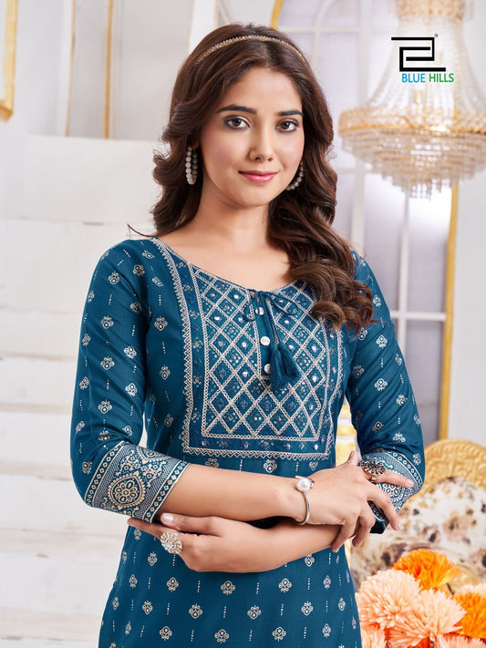Peacock Vol 3 Blue Hills Rayon 14Kg Knee Length Kurtis