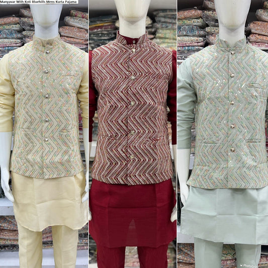 Manyavar With Koti Bluehills Silk Mens Kurta Pajama