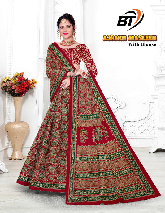 Ajrakh Masleen Bt Cotton Sarees Wholesaler Ahmedabad