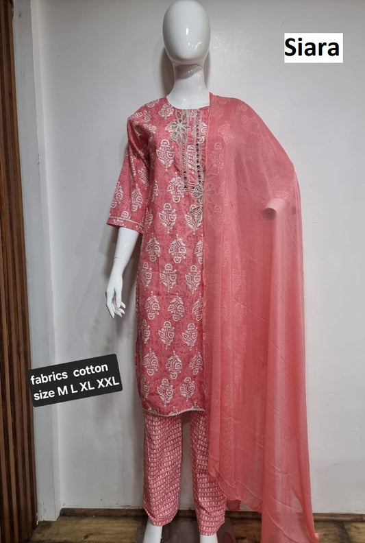 Neck Embroidery Siara Soft Cotton Readymade Pant Style Suits Exporter