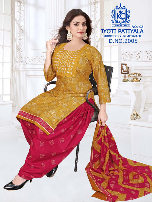Jyoti Vol 2 Embroidery Kcf Readymade Cotton Patiyala Suits Wholesale Rate