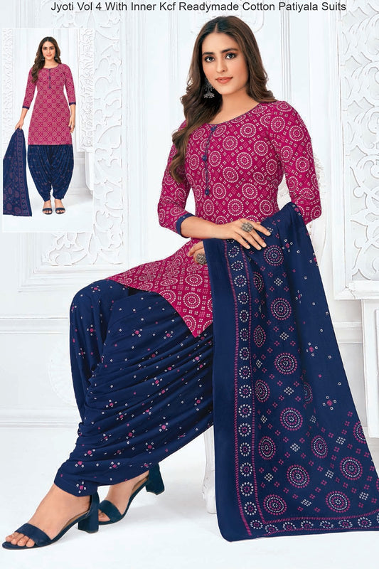 Jyoti Vol 4 With Inner Kcf Readymade Cotton Patiyala Suits Wholesaler Gujarat