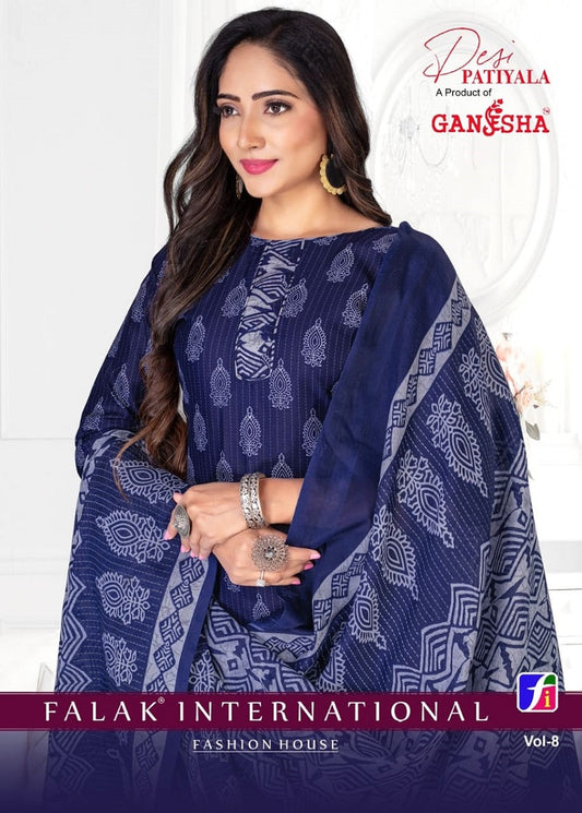 Desi Vol 8 Ganesha Cotton Readymade Cotton Patiyala Suits