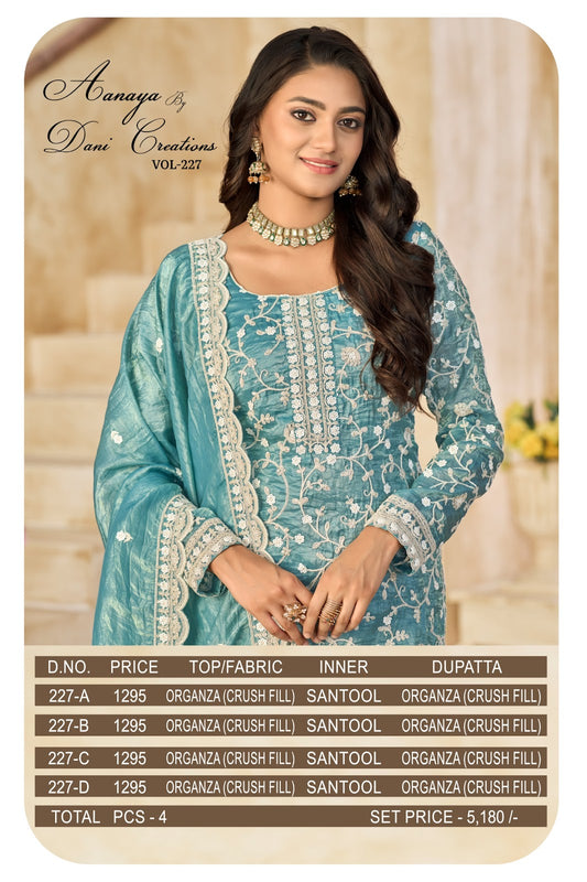 Aanaya Vol 227 Dani Creation Organza Pant Style Suits Wholesale Price