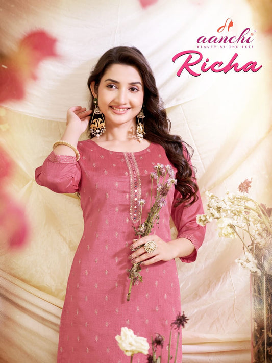 Richa Aanchi Vichitra Silk Long Straight Kurti Wholesaler