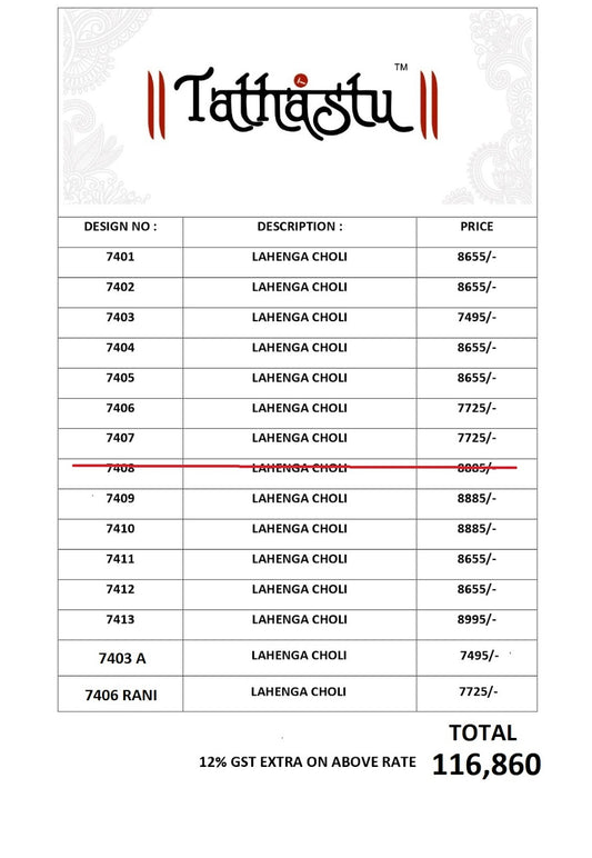 Anaara 7400 Series Tathastu Lehenga Choli Supplier Gujarat