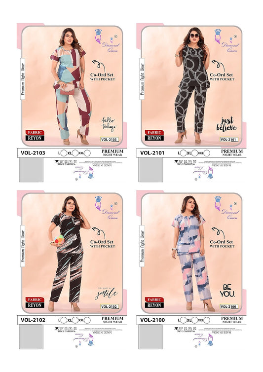 Rayon Print Diamond Queen Co Ord Set Wholesale Rate