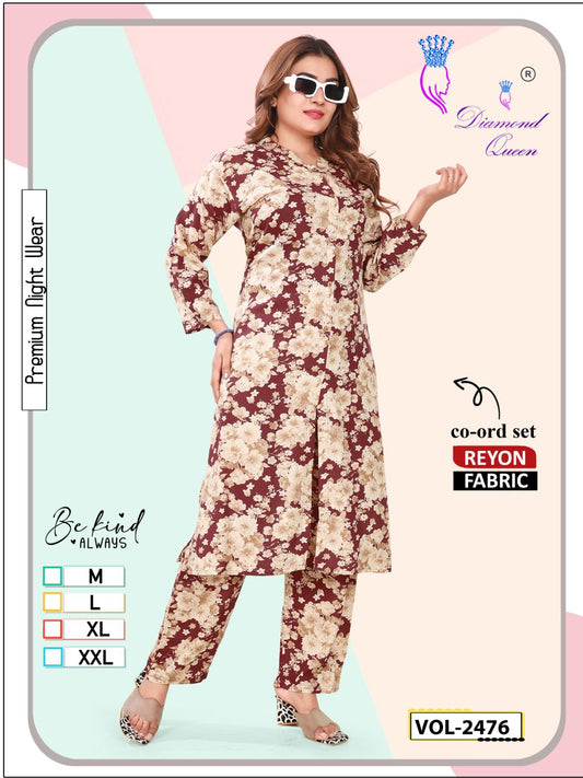 Print 0807 Diamond Queen Rayon 22Kg Co Ord Set Exporter Gujarat