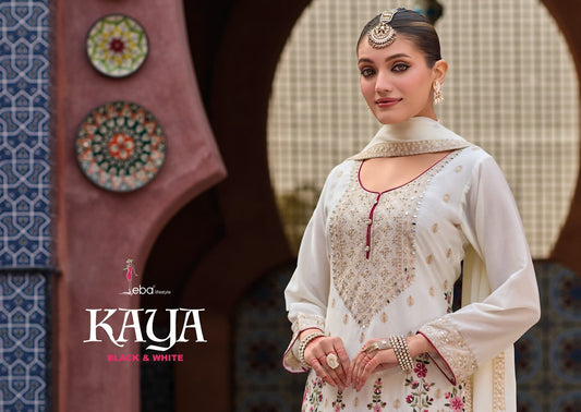 Kaya Black & White Eba Lifestyle Chinon Pakistani Readymade Suits Supplier Gujarat