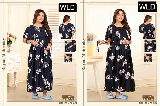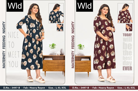 Design 3497 Wld Heavy Rayon Feeding Night Gown Wholesaler India