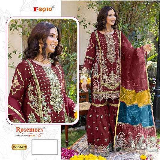 Rosemeen C 1814 Fepic Organza Pakistani Salwar Suits Exporter Gujarat