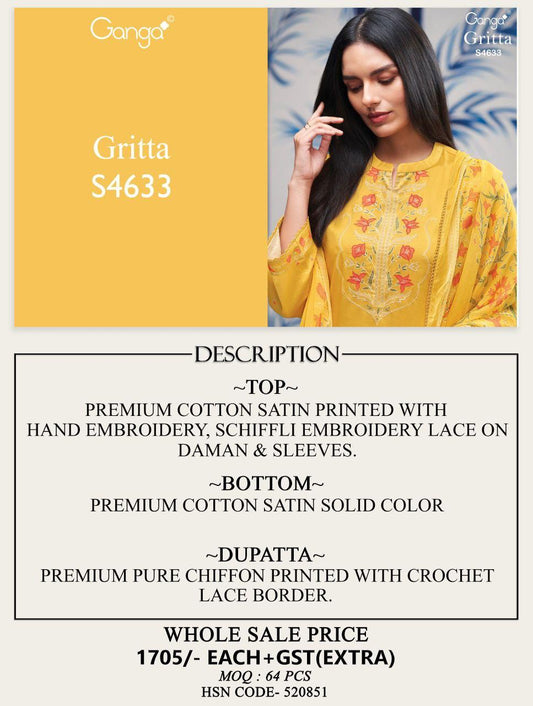 Gritta 4633 Ganga Cotton Satin Pant Style Suits Wholesaler Gujarat