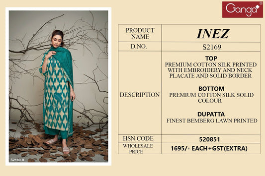 Inez 2169 Ganga Cotton Silk Plazzo Style Suits
