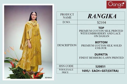 Rangika 2104 Ganga Cotton Silk Plazzo Style Suits