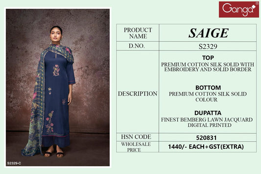 Saige 2329 Ganga Cotton Silk Plazzo Style Suits